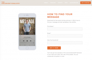 Audio downloads make great lead magnets. The example offers free audio training. Free audios can also include lectures, interviews, audio books, or podcasts.