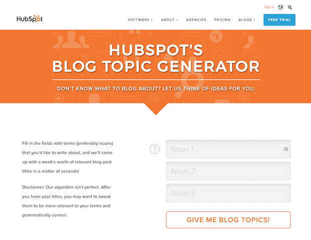 A generator lead magnet is much like a calculator in that you input some data and it generates an answer (or answers) for you. Hubspot’s generator helps you create blog topics by inputting a couple of keywords. Other generators include keyword generators, recipe generators, and even a lead magnet generator.