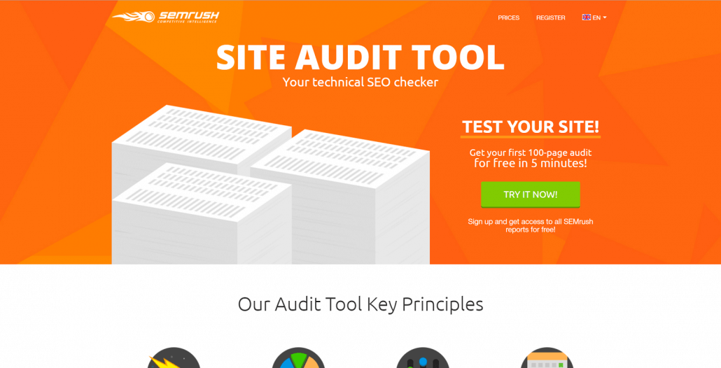 SEMrush offers a free online tool where you can test your site that tests your website’s SEO. This offer works for them because they capture emails for their list from people who are genuinely interested in SEO, and therefore, the services SEMrush offers.
