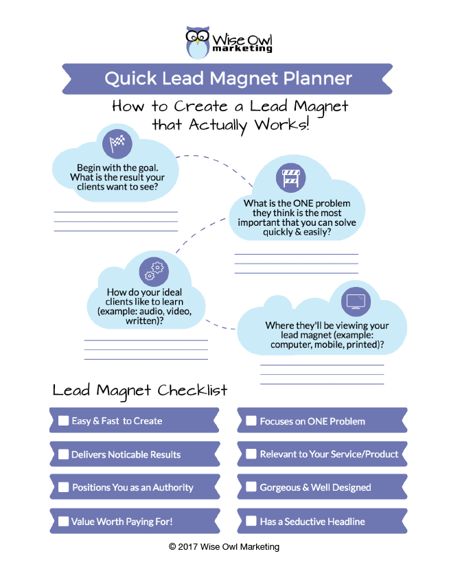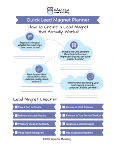 This planner shows you how to quickly plan your lead magnet. A lead magnet on lead magnets! Other planners could be wedding planners, general daily/weekly/monthly/yearly planner, blog planner, or a book planner.