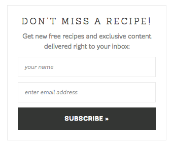 Offer free recipes in exchange for an email address. These could be recipe collections, cookbooks, a specific recipe, or new recipes as they are published (as in the example above).