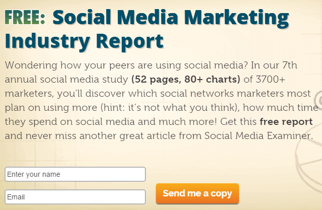 A report shows how something can be done. The example promises to show subscribers how to become good social media marketers with a 52-page report that includes more than 80 charts and a study of more than 3,700 marketers. There is a lot of value in free reports.
